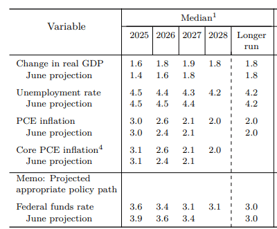 - Prognoza dla stopy bezrobocia ma zostać minimalnie podniesiona na 2026 rok do 4,5%. Jeśli rynek pracy faktycznie będzie ulegał pogorszeniu, Fed może zdecydować się na więcej obniżek stóp procentowych w przyszłym roku. Prognozy dla bezrobocia mogą być kluczowe dla perspektyw stóp procentowych