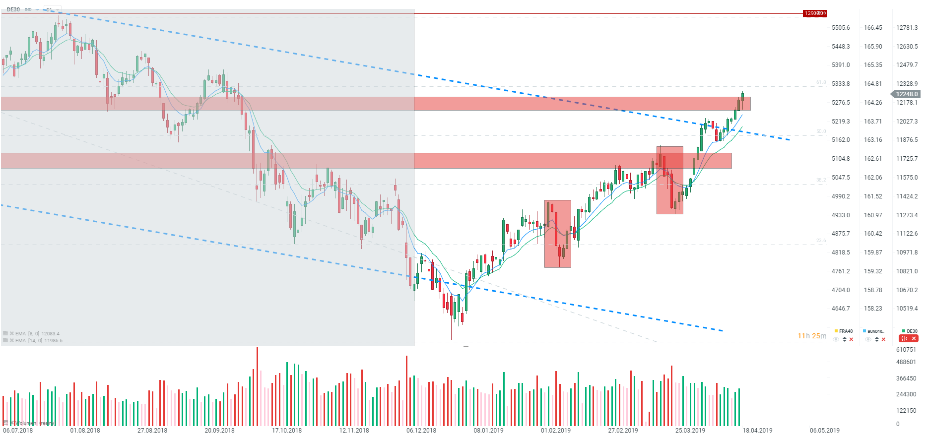Niemiecki DAX kontynuuje wzrosty pomimo negatywnego wydźwięku ze strony danych. Źródło: xStation5
