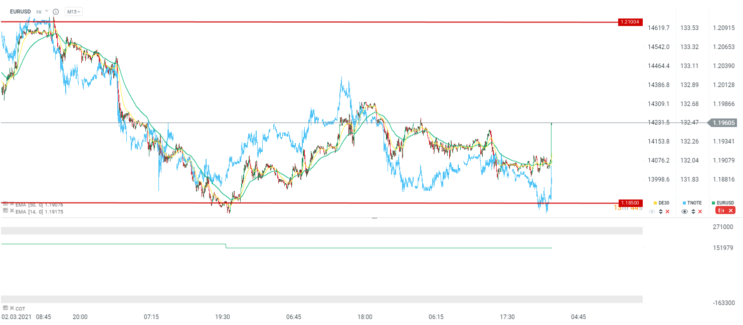 EURUSD wyraźnie w górę. TNOTE również zyskują. Źródło: xStation5