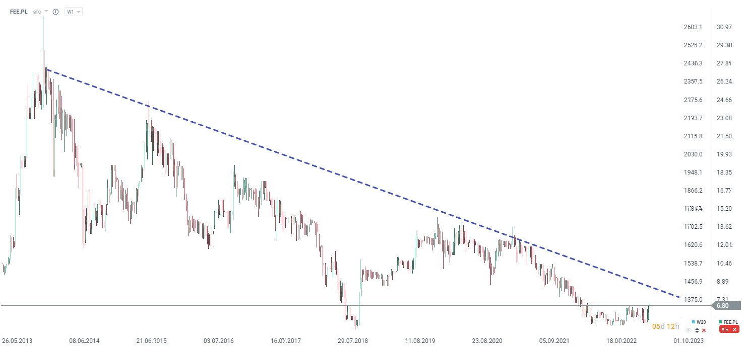 Spółka rozpoczyna 3 tydzień mocnych wzrostów po ostatnim teście okolic historycznych minimów. Źródło: xStation5