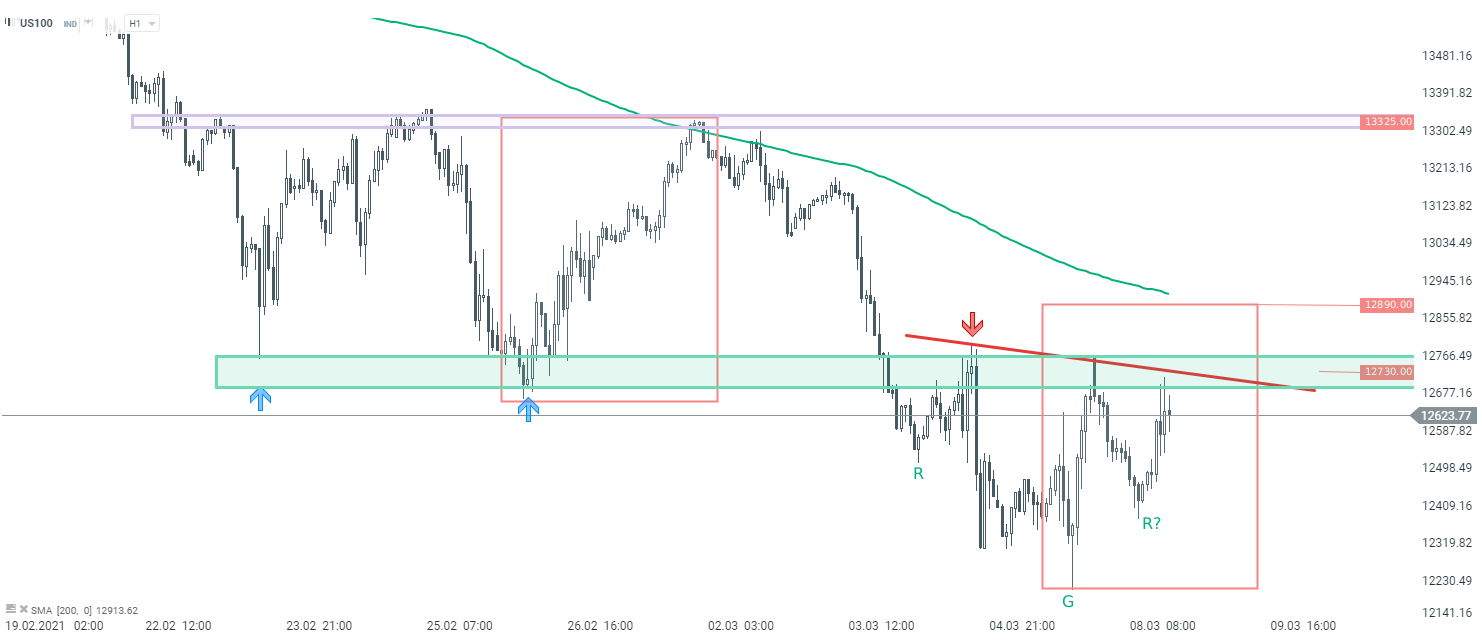 US100 interwał H1. Źródło: xStation5