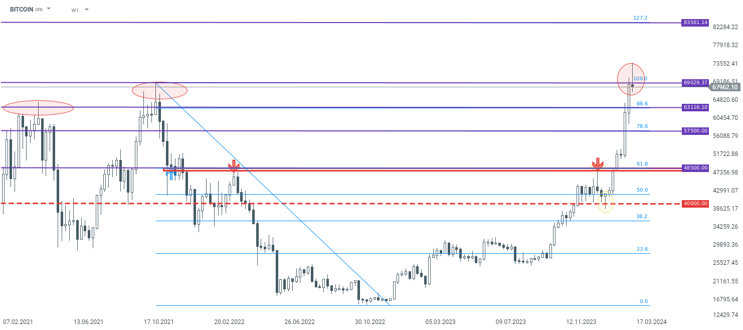 Bitcoin interwał W1. Źródło: xStation5