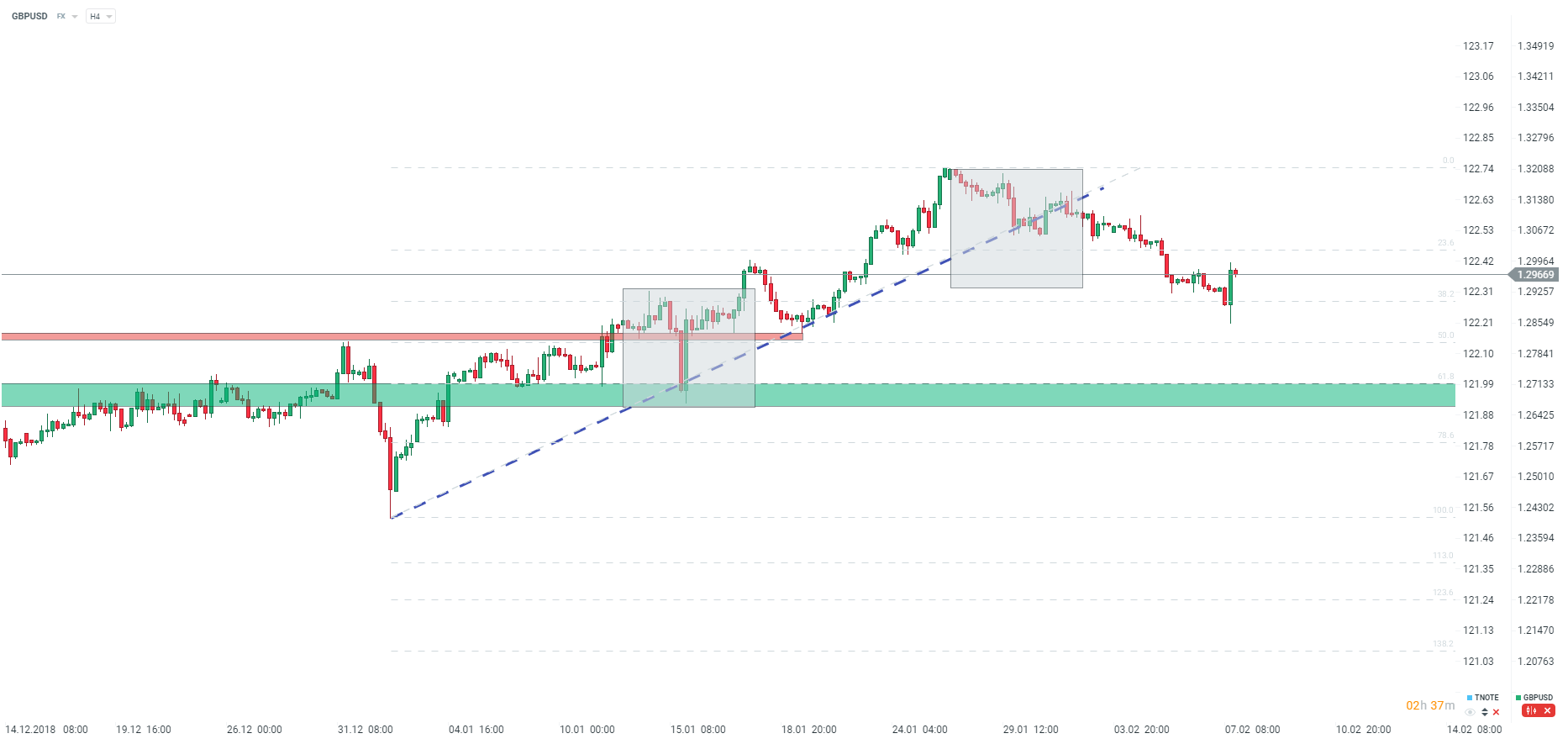 Brytyjski funt minimalnie cofa się po ostatnich doniesieniach z linii negocjacyjnej UK-EU. Wielkość obecnego spadku mieści się w zasięgu korekty, choć została ona wyraźnie naruszona. Co więcej, para znajduje się w wyraźnym krótkoterminowym kanale spadkowym, który na razie wydaje się być nienaruszony. Źródło: xStation5