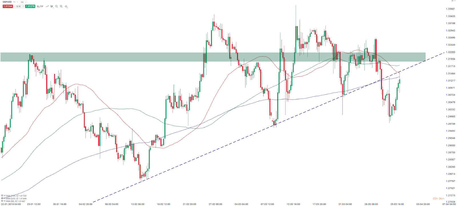 Obecnie trwa debata w Izbie Gmin, a po niej zostaną przeprowadzone kolejne głosowania, które mogą wskazać dalszą drogę dla Brexitu. Największe poparcie wydaje się mieć wniosek nazwany tzw. Wspólną Unią Celną 2.0. Według ostatnich informacji może on zyskać poparcie członków partii May, co może wywrzeć presję na sam rząd, aby zmienił swoje podejście do Brexitu, w szczególności, że do 12 kwietnia zostało coraz mniej czasu. Plotki na temat możliwego poparcia tego wniosku, pomagają notowaniom funta, który również znajduje wsparcie ze strony lepszych od oczekiwań odczytów PMI, które poznaliśmy o poranku.