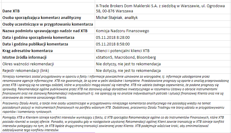 Ta publikacja handlowa jest informacyjna i edukacyjna. Nie jest rekomendacją inwestycyjną ani informacją rekomendującą lub sugerującą strategię inwestycyjną. W materiale nie sugerujemy żadnej strategii inwestycyjnej ani nie świadczymy usługi doradztwa inwestycyjnego. Materiał nie uwzględnia indywidualnej sytuacji finansowej, potrzeb i celów inwestycyjnych klienta. Nie jest też ofertą sprzedaży ani subskrypcji. Nie jest zaproszeniem do nabycia, reklamą ani promocją jakichkolwiek instrumentów finansowych. Publikację handlową przygotowaliśmy starannie i obiektywnie. Przedstawiamy stan faktyczny znany autorom w chwili tworzenia dokumentu. Nie umieszczamy w nim żadnych elementów oceniających. Informacje i badania oparte na historycznych danych lub wynikach oraz prognozy nie stanowią pewnego wskaźnika na przyszłość. Nie odpowiadamy za Twoje działania lub zaniechania, zwłaszcza za to, że zdecydujesz się nabyć lub zbyć instrumenty finansowe na podstawie informacji z tej publikacji handlowej. Nie odpowiadamy też za szkody, które mogą wynikać z bezpośredniego czy też pośredniego wykorzystania tych informacji. Inwestowanie jest ryzykowne. Inwestuj odpowiedzialnie.