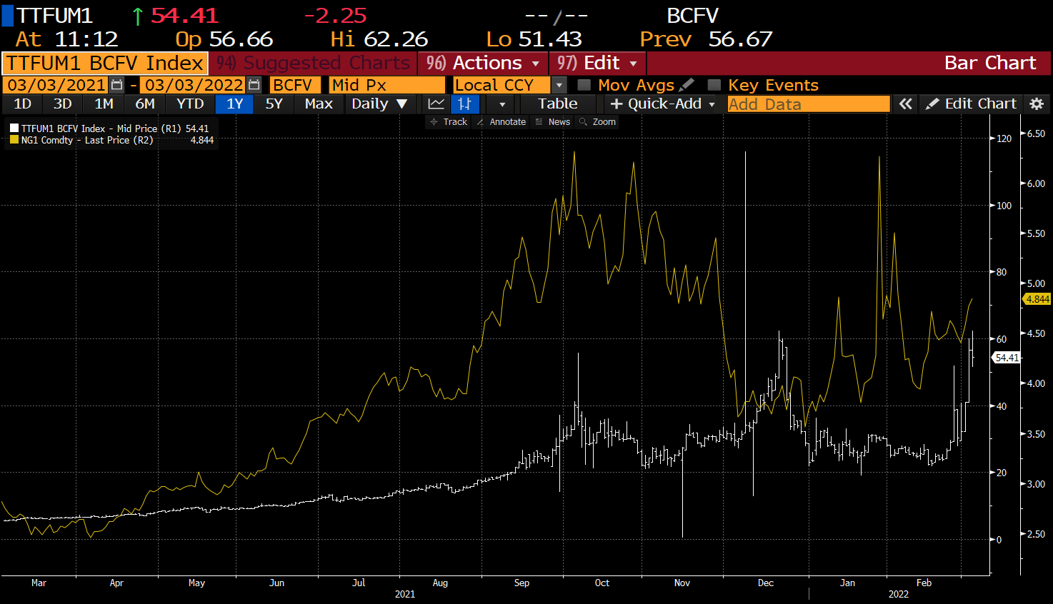 Ceny gazu w Europie otwierają się dzisiaj na nowych szczytach wszechczasów. W kontrakcie w dostawie za miesiąc była to cena 193 euro za MWh, natomiast obserwowano również ceny na poziomie 199 EUR za kontrakt. W przeliczeniu na amerykańskie kwoty daje to ponad 55 USD za MMBTU lub ok. 360 dolarów ekwiwalentu baryłki ropy naftowej! Ceny wydają się być obecnie abstrakcyjne, natomiast traderzy i inwestorzy obawiają się zakończenia dostaw z Rosji. Oczywiście sam problem stoi też po stronie traderów, którzy nie handlują rosyjskim gazem i ropą, co powoduje wzrost cen ze względu na popyt na produkty z innych rejonów. Warto wspomnieć, że Wielka Brytania wciąż zamierza sprowadzać rosyjski gaz, pomimo nałożonych sankcji.
