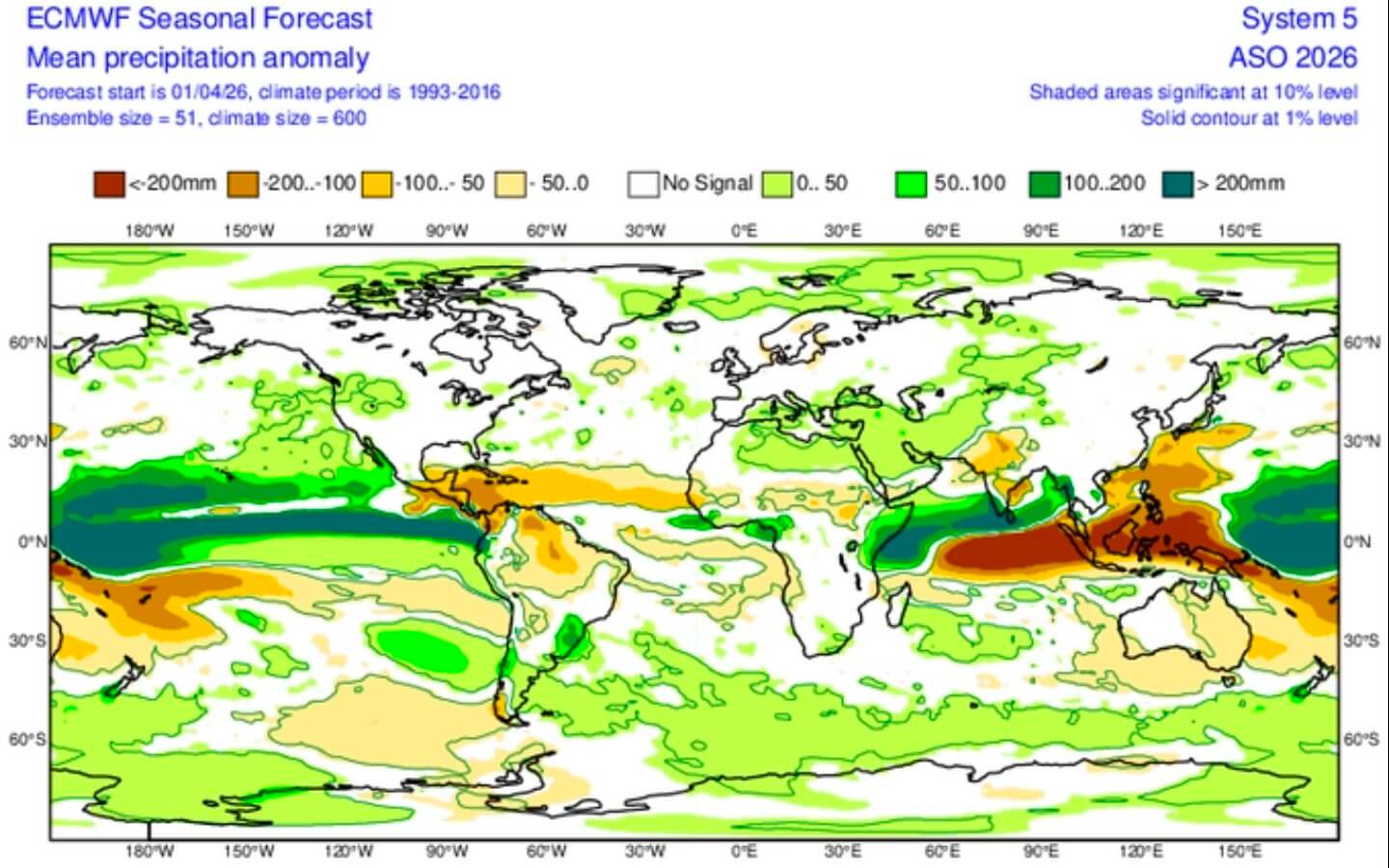 - Silne anomalie opadów, w tym susze w Indonezji i północnej Australii oraz nadmierne opady nad równikowym Pacyfikiem, potwierdzają skalę zaburzeń klimatycznych i ich globalny zasięg.