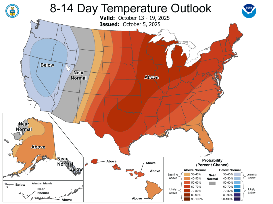 Mapy pogodowe NOAA wskazują spore oziębienie klimatu w zachodnich Stanach Zjednoczonych i ustępujące upały na Florydzie.