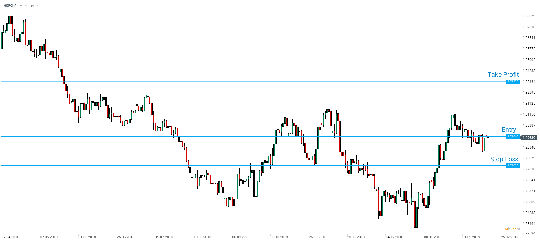 Morgan Stanley rekomenduje zajęcie długiej pozycji na GBPCHF po cenie rynkowej z celem przy 1,3350 i zleceniem stop loss przy 1,2760. Źródło: xStation5