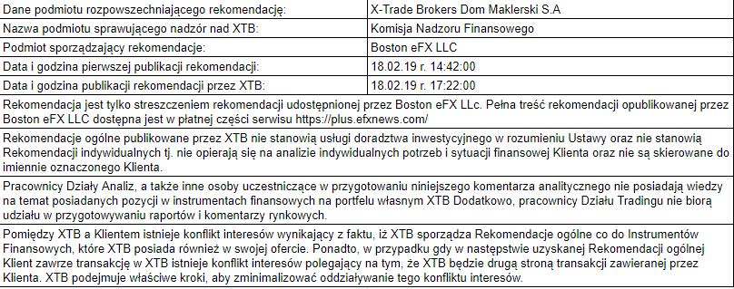 Bank rekomenduje zajęcie długiej pozycji na parze z następującymi poziomami: