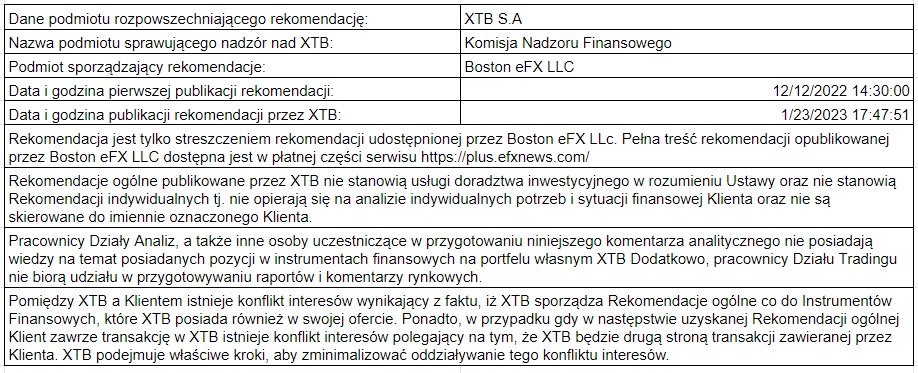 Ta publikacja handlowa jest informacyjna i edukacyjna. Nie jest rekomendacją inwestycyjną ani informacją rekomendującą lub sugerującą strategię inwestycyjną. W materiale nie sugerujemy żadnej strategii inwestycyjnej ani nie świadczymy usługi doradztwa inwestycyjnego. Materiał nie uwzględnia indywidualnej sytuacji finansowej, potrzeb i celów inwestycyjnych klienta. Nie jest też ofertą sprzedaży ani subskrypcji. Nie jest zaproszeniem do nabycia, reklamą ani promocją jakichkolwiek instrumentów finansowych. Publikację handlową przygotowaliśmy starannie i obiektywnie. Przedstawiamy stan faktyczny znany autorom w chwili tworzenia dokumentu. Nie umieszczamy w nim żadnych elementów oceniających. Informacje i badania oparte na historycznych danych lub wynikach oraz prognozy nie stanowią pewnego wskaźnika na przyszłość. Nie odpowiadamy za Twoje działania lub zaniechania, zwłaszcza za to, że zdecydujesz się nabyć lub zbyć instrumenty finansowe na podstawie informacji z tej publikacji handlowej. Nie odpowiadamy też za szkody, które mogą wynikać z bezpośredniego czy też pośredniego wykorzystania tych informacji. Inwestowanie jest ryzykowne. Inwestuj odpowiedzialnie.