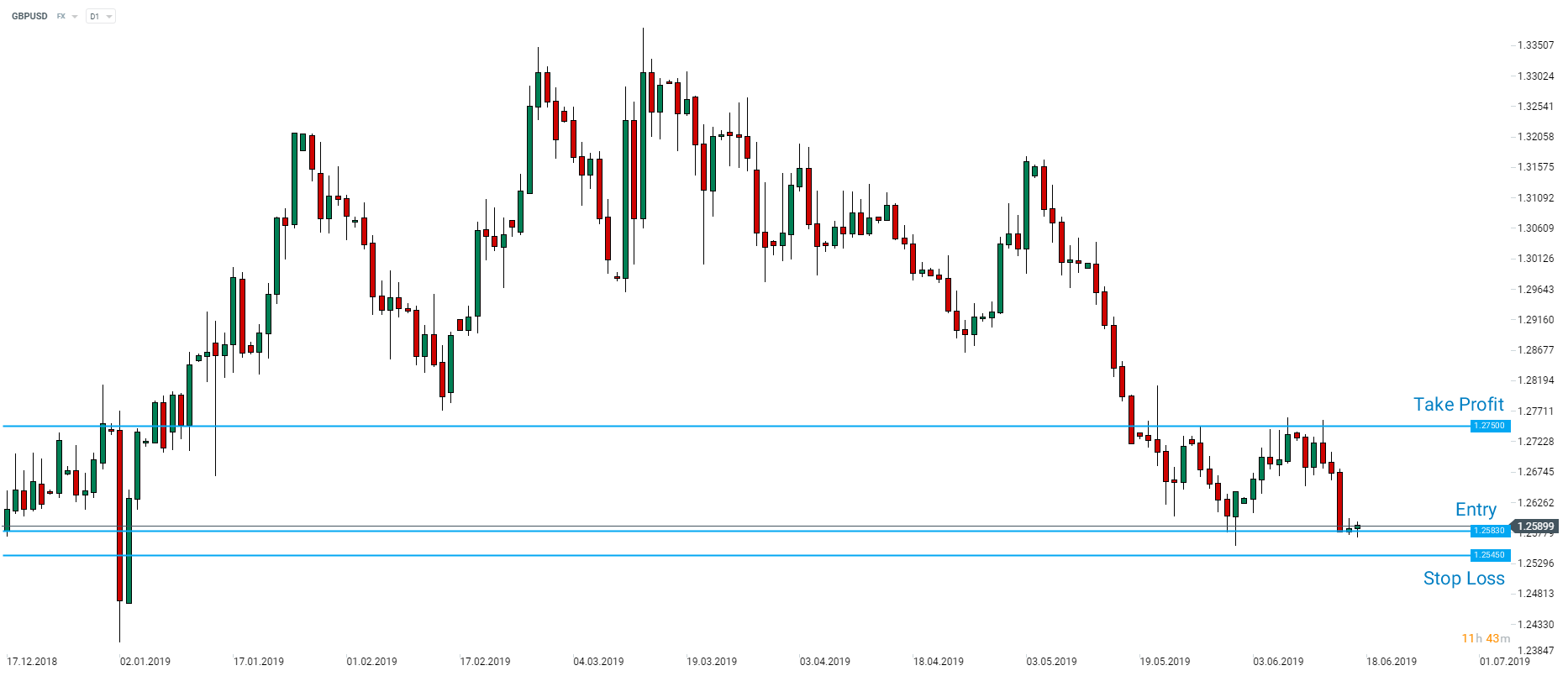 Thomson Reuters IFR rekomenduje długą pozycję na GBPUSD z celem na poziomie 1.2750 oraz stop lossem na poziomie 1.2545. Źródło: xStation5