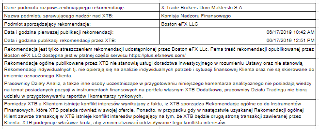 Agencja wydała długą pozycję po cenie rynkowej z następującymi poziomami