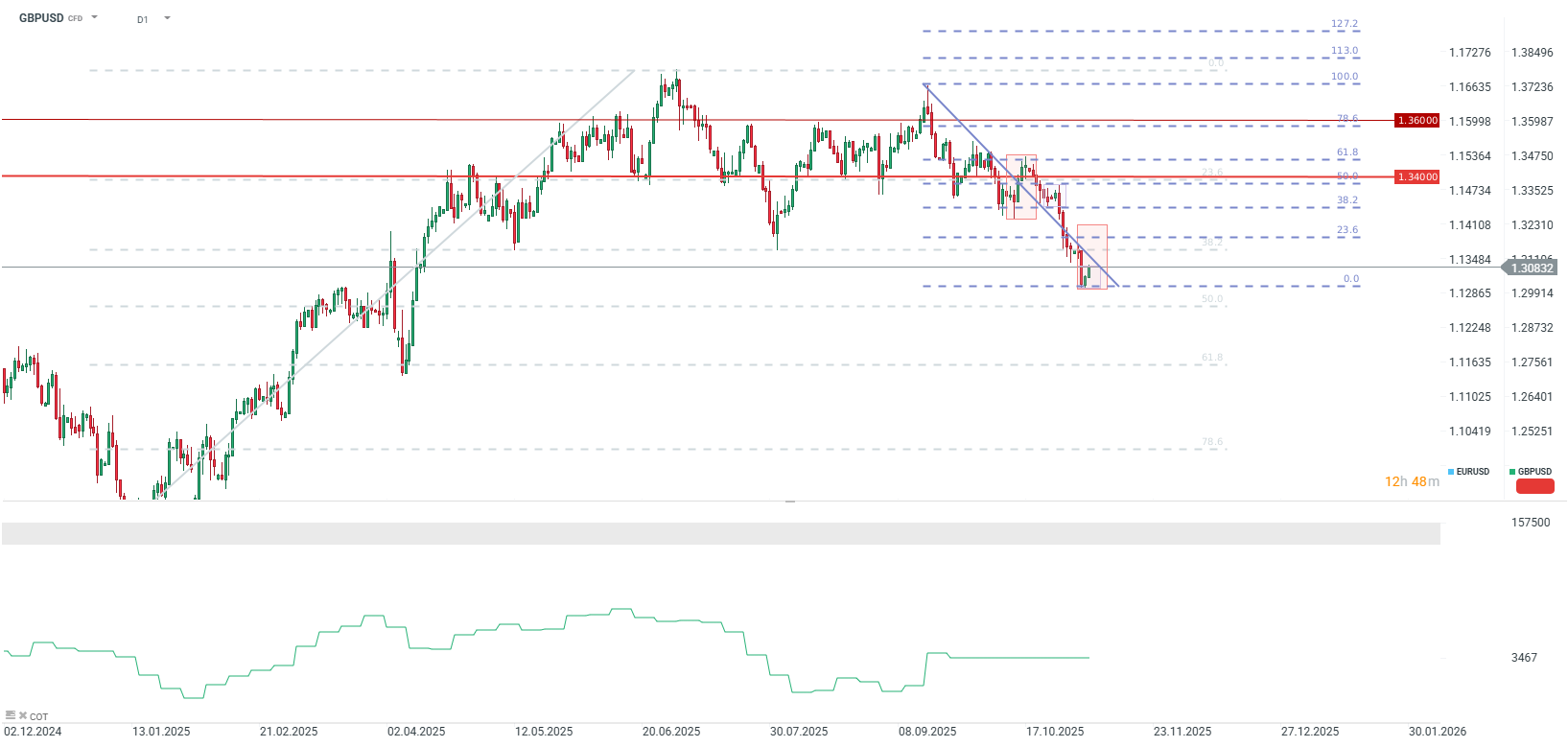 W przypadku obniżki stóp procentowych powinniśmy zauważyć momentalny spadek poniżej poziomu 1,30. Taki scenariusz może być również widoczny, jeśli BoE wyśle sygnał gotowości do obniżki w grudniu, jeśli pozwoli na to zarys budżetu.