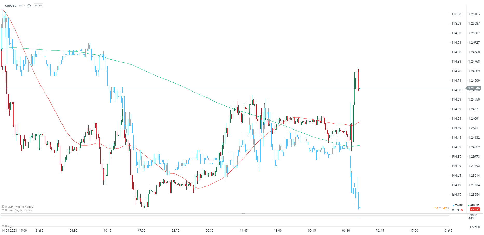 GBPUSD reaguje na dzisiejsze dane i wyraźnie rośnie w kierunku 1,2500, nawet pomimo wzrostu rentowności w USA.
