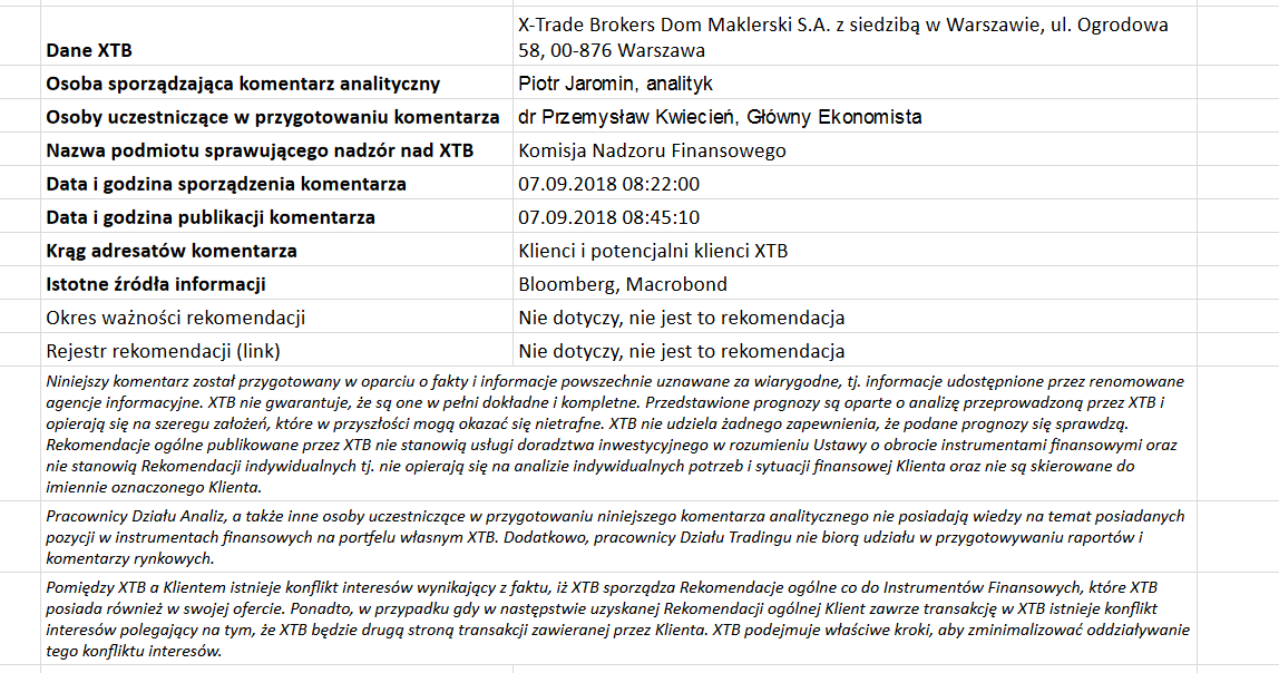 Ta publikacja handlowa jest informacyjna i edukacyjna. Nie jest rekomendacją inwestycyjną ani informacją rekomendującą lub sugerującą strategię inwestycyjną. W materiale nie sugerujemy żadnej strategii inwestycyjnej ani nie świadczymy usługi doradztwa inwestycyjnego. Materiał nie uwzględnia indywidualnej sytuacji finansowej, potrzeb i celów inwestycyjnych klienta. Nie jest też ofertą sprzedaży ani subskrypcji. Nie jest zaproszeniem do nabycia, reklamą ani promocją jakichkolwiek instrumentów finansowych. Publikację handlową przygotowaliśmy starannie i obiektywnie. Przedstawiamy stan faktyczny znany autorom w chwili tworzenia dokumentu. Nie umieszczamy w nim żadnych elementów oceniających. Informacje i badania oparte na historycznych danych lub wynikach oraz prognozy nie stanowią pewnego wskaźnika na przyszłość. Nie odpowiadamy za Twoje działania lub zaniechania, zwłaszcza za to, że zdecydujesz się nabyć lub zbyć instrumenty finansowe na podstawie informacji z tej publikacji handlowej. Nie odpowiadamy też za szkody, które mogą wynikać z bezpośredniego czy też pośredniego wykorzystania tych informacji. Inwestowanie jest ryzykowne. Inwestuj odpowiedzialnie.