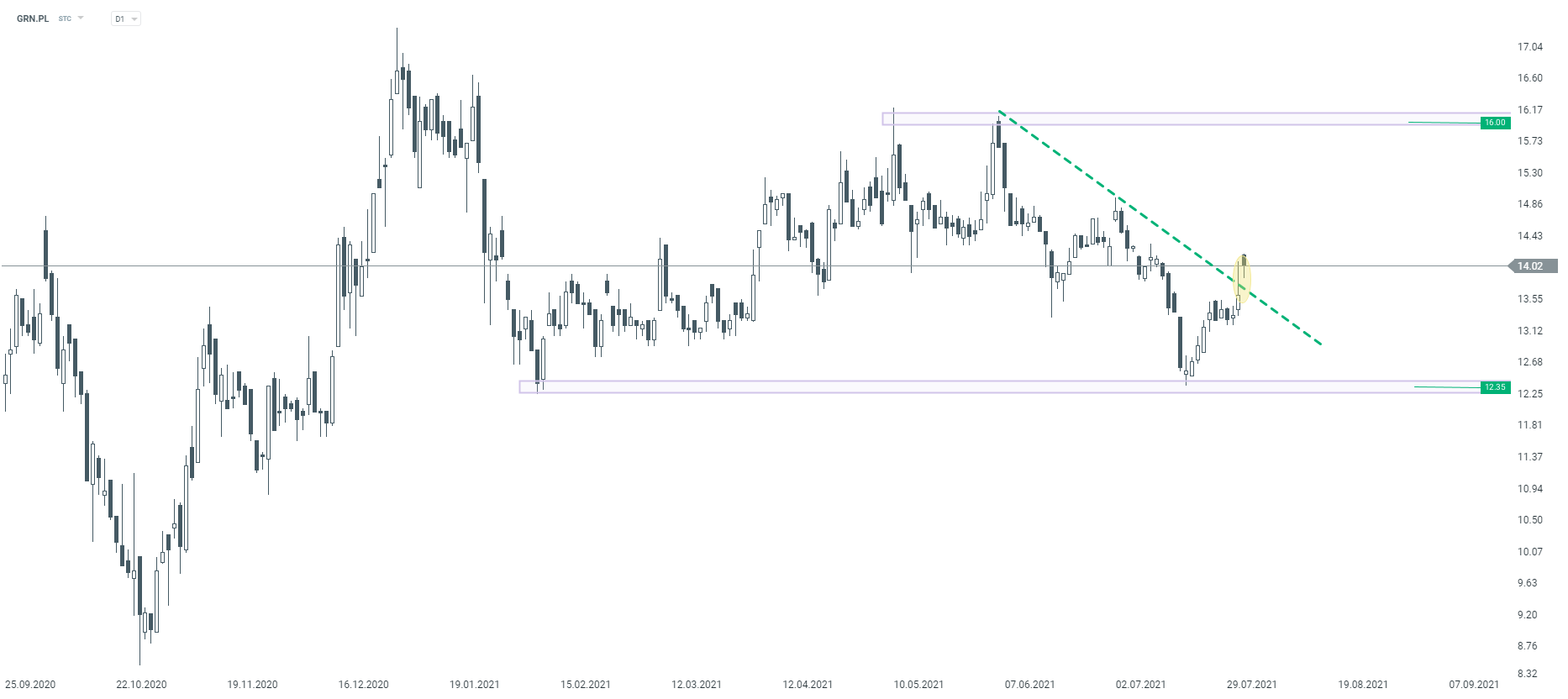 Grodno (GRN.PL) interwał D1. Źródło: xStation5
