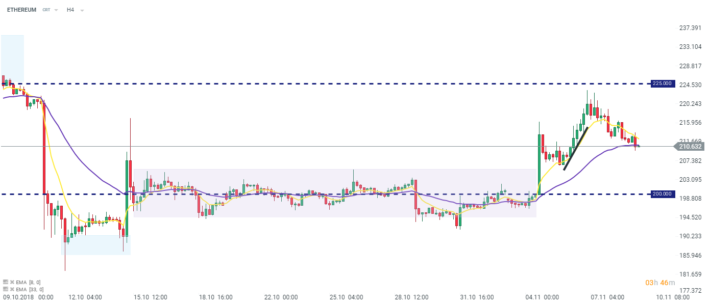 ETHEREUM, podobnie jak inne ważniejsze waluty wirtualne, doświadczył spadków w ostatnich godzinach. Jednakże, skala tych spadków może zostać określona jako umiarkowana. Kryptowaluta charakteryzująca się kapitalizacją rynkową na poziomie blisko 22 miliardów dolarów zaliczyła spadek w wysokości około 0,8% od północy. Niemniej jednak, ETHEREUM wciąż znajduje się powyżej zakresu poprzedniej konsolidacji widzianej w drugiej połowie poprzedniego miesiąca. Źródło: xStation5.
