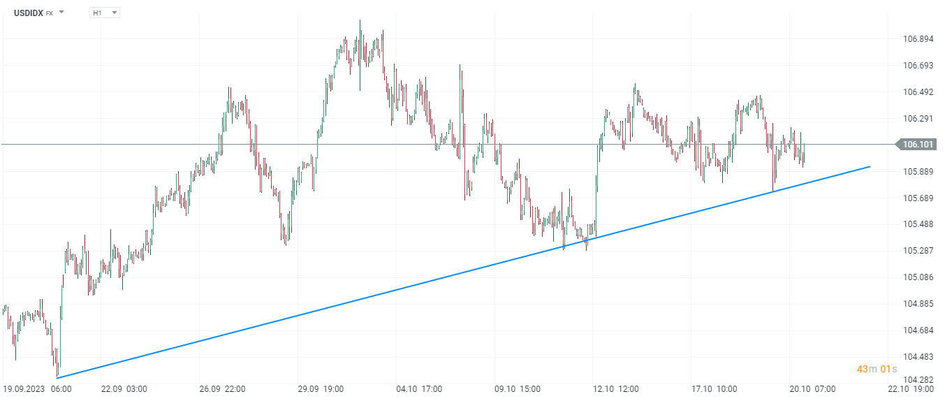 Patrick Harker, szef Fed z Filadelfii wskazał, że gospodarka w USA słabnie szybciej niż sądzono i szybciej niż oczekiwano spada też inflacja. Jednocześnie podkreślił, że gospodarka w ogólnym ujeciu pozostaje i tak niezwykle odporna. Bankier dołączył do grupy, która opowiada się za utrzymaniem stóp procentowych i uważnym obserwowaniem napływających danych. Rynek praktycznie upewnia się, że stopy nie wzrosną w listopadzie. Bank of America takżę przełożył oczekiwania wobec podwyżki z listopada na grudzień. Zdaniem Harkera obecnie jest czas aby utrzymywać stopy procentowe na niezmiennym poziomie, a Fed nie może pozwolić sobie na wzrost inflacji.