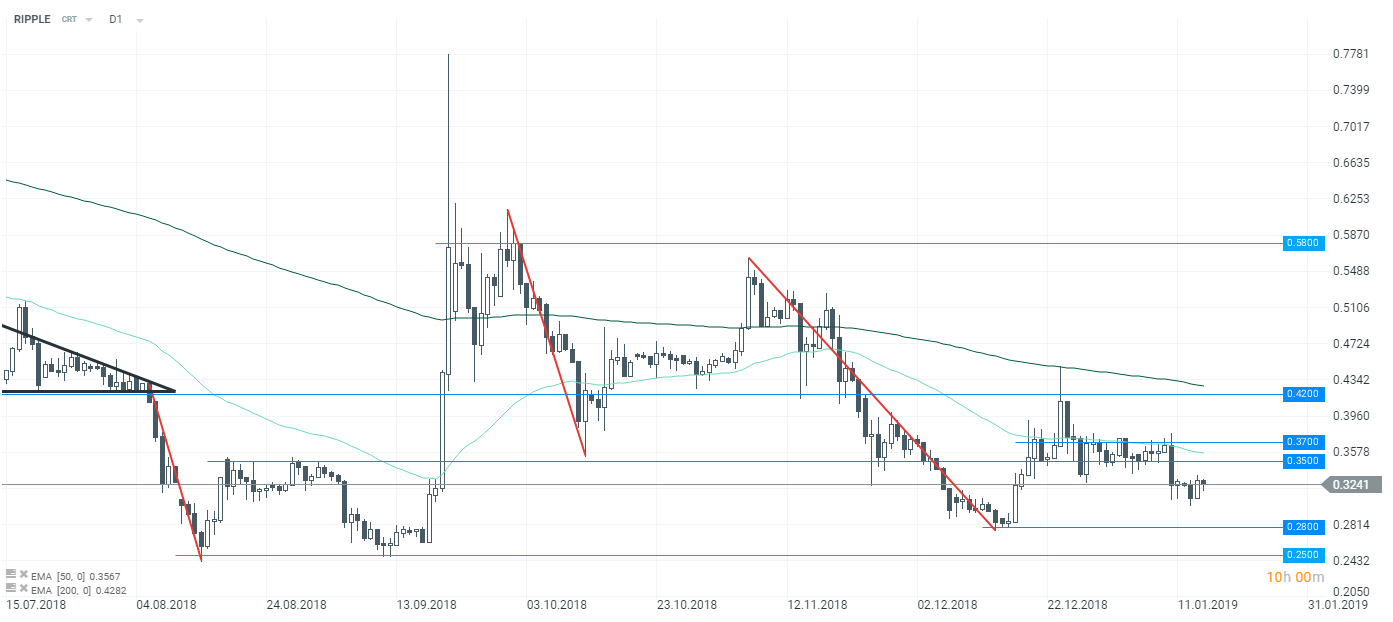 Ripple (RIPPLE na xStation5) ostatnio przegoniło po raz kolejny Ethereum pod względem kapitalizacji rynkowej, jednak dominacja kryptowaluty może być opisana jako raczej symboliczna. Źródło: xStation5.