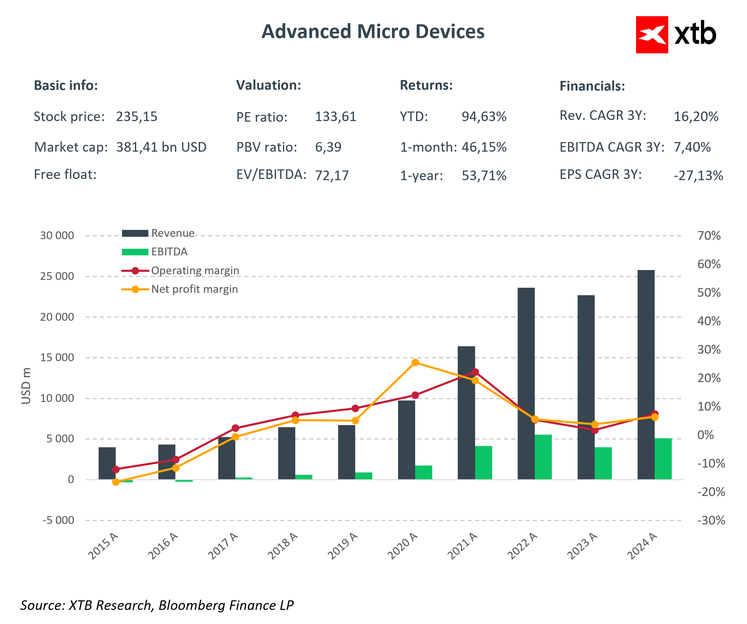 - AMD nadrabia dystans do NVIDII, staje się kluczowym graczem dla firm AI i technologicznych, a w tym roku wzrost wartości akcji obu spółek przewyższył benchmarki, z AMD wyznaczającym teraz tempo innowacji.
