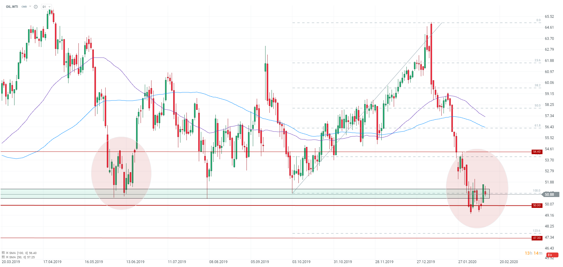 Ropa naftowa otwiera się dzisiaj luką spadkową oraz traci w trakcie sesji, co redukuje o połowę wzrosty z wczorajszego dnia. Jak widać nie ma obecnie dobrych informacji z rynku dla rynku ropy, choć rynek ten wydaje się być obecnie bardzo mocno wyprzedany. Źródło: xStation5