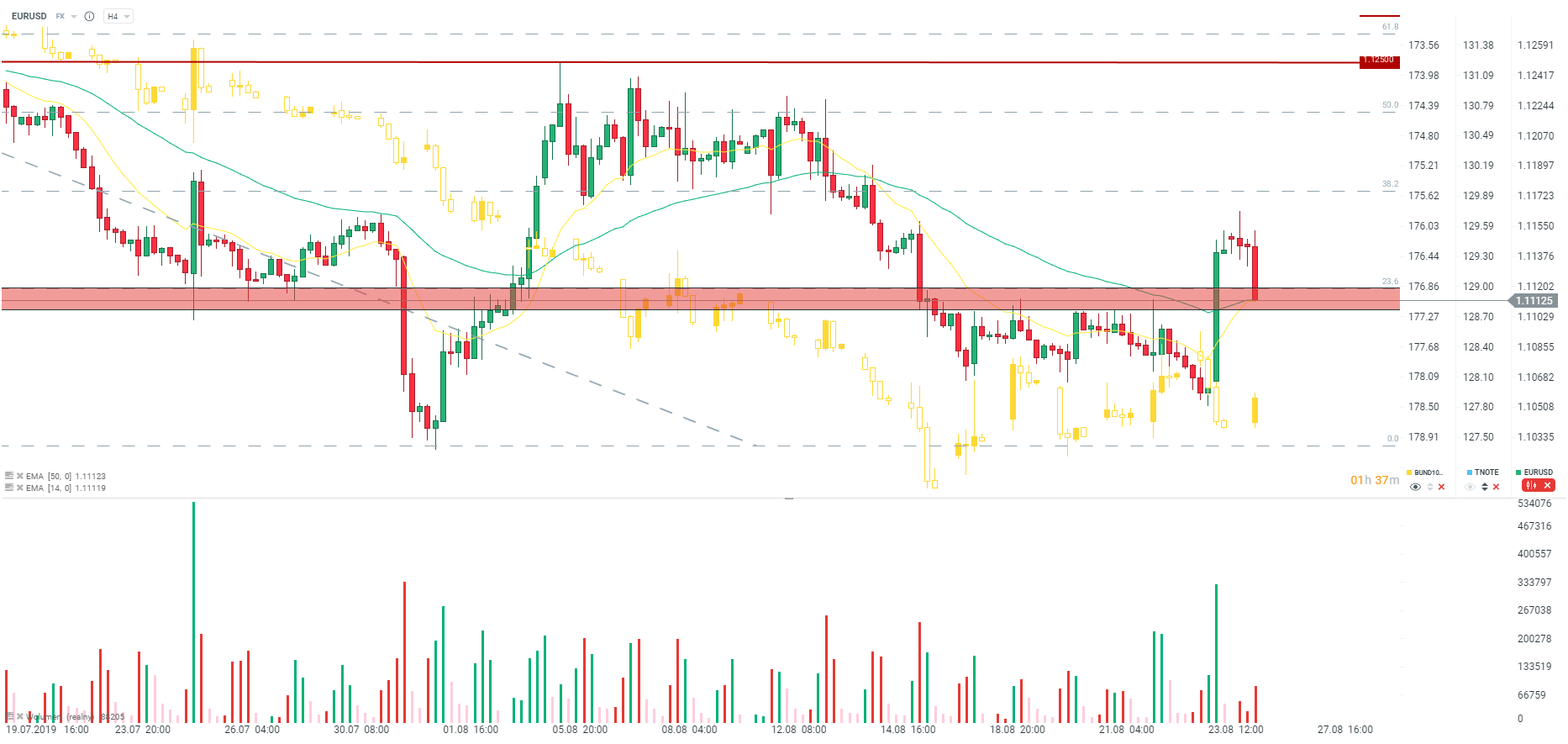 Euro słabie w odpowiedzi na słabsze dane dotyczące oczekiwań biznesowych w Niemczech. Źródło: xStation5