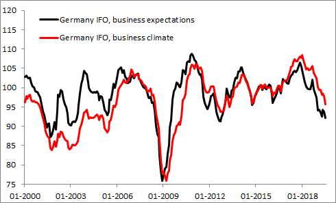 Z drugiej strony Instytut Ifo wskazuje, że widzi pozytywny wzrost w II połowie 2019 roku, choć recesja rozpościera się we wszystkich ważniejszych sektorach gospodarki. Ifo jednocześnie widzi spore ryzyko w postaci Brexitu oraz nie wierzy w dzisiejsze luzowanie polityki ze strony EBC.