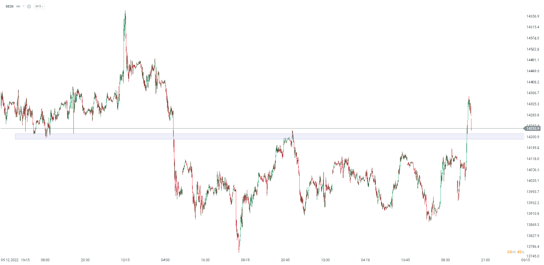 W ostatnich kilkudziesięciu minutach obserwujemy wyraźne cofnięcie kontraktów na indeksy, w Stanach Zjednoczonych oraz w Europie. Co ciekawe inflacja w niektórych niemieckich landach zaliczyła spory spadek, choć był to wynik jednorazowej płatności konsumenckich rachunków za gaz przez władze. Dzisiaj o 14:00 poznamy dane dla całych Niemiec i teoretycznie mogłyby być to dane pozytywne z perspektywy indeksów, choć jednocześnie oczekuje się odbicia inflacji bazowej, która może być bardziej znacząca dla EBC z perspektywy ostatniej zmiany komunikacji na bardziej jastrzębią.