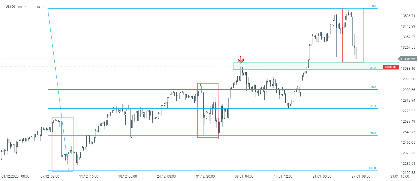 US100 interwał H1. Źródło: xStation5.