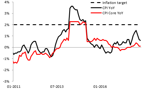 Inflacja w Japonii uzasadnia gołębie nastawienie BOJ. Źródło: Macrobond, XTB Research