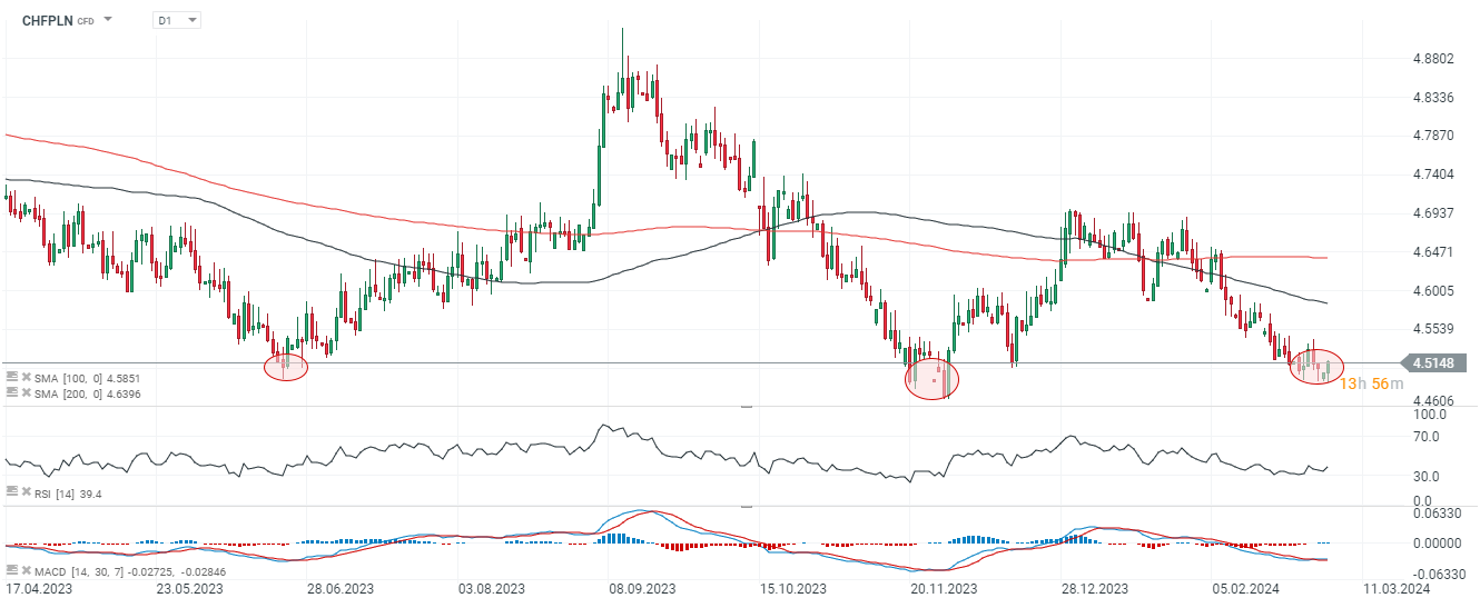 Inflacja CPI w Szwajcarii, za luty wyniosła 1,2% wobec 1,1% prognoz i 1,3% poprzednio. Kurs CHFPLN kolejny raz odbija się od strefy 4,50; nieco wyższy odczyt umocnił franka.