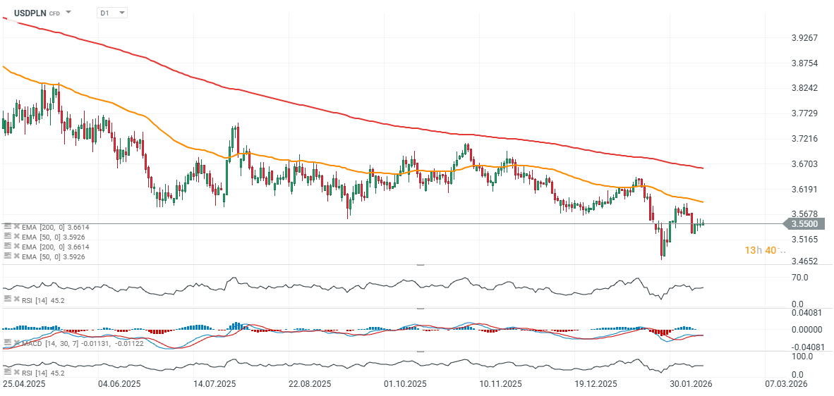 Polski złoty jest stabilny po publikacji, para USDPLN praktycznie nie zareagowała na odczyt CPI. Wydaje się, że odczyt potwierdza słuszność ostatniej decyzji RPP o wstrzymaniu obniżek stóp, ale z drugiej strony wcale nie zdejmuje ze stołu perspektywy obniżki stóp w marcu - po projekcjach inflacyjnych na dalszą część roku.