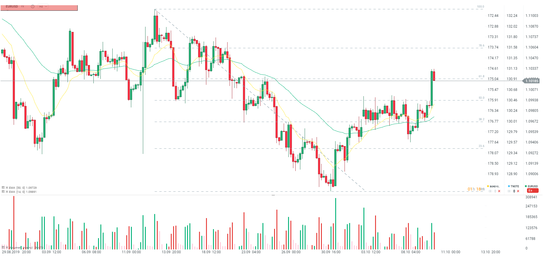 Jak odczytać ten raport? Bardzo neutralnie. Nie ma tak negatywnego zaskoczenia jak w przypadku inflacji producenckiej. Dane te pokazują, że inflacja nie zachowała się negatywnie, co może nieco zmniejszać presję na dalsze cięcia stóp procentowych w Stanach Zjednoczonych. W odpowiedzi dolar umacnia się na rynku, odrabiając straty z dzisiejszego poranka. Para EURUSD znajduje się jednak wyraźnie powyżej poziomu 1,1000, naruszając nawet zniesienie 61.8.