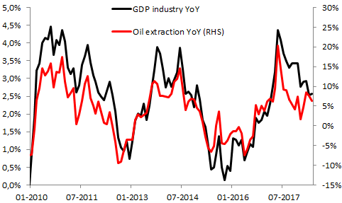 W tym samym czasie, w którym napływały informacje ze Stanów Zjednoczonych, mogliśmy również poznać najnowsze dane dotyczące Kanady, które wypadły lepiej od oczekiwań. W ujęciu miesięcznym kanadyjskie PKB w maju pokazało wynik 0,5% w porównaniu do oczekiwanego 0,3% i wcześniejszego 0,1%. W ujęciu rocznym wynik wydaje się być jeszcze bardziej imponujący (tj. 2,6% w porównaniu do oczekiwanego 2,3% i poprzedniego odczytu na poziomie 2,5%). Istnieje silna korelacja pomiędzy kanadyjskim PKB w ujęciu rocznym a wydobyciem ropy naftowej. Ostatnie spadki wydobycia ropy miały wpływ na PKB, jednakże ogólny obraz wydaje się być nadal dosyć pozytywny.