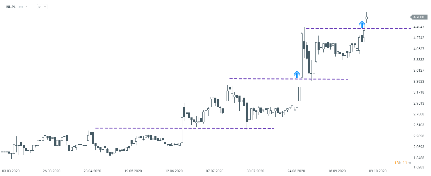 Podczas czwartkowej sesji możemy obserwować mieszane nastroje na rynku akcji. Wśród spółek z indeksu WIG należy zwrócić uwagę na Introl (INL.PL), czyli firmę działającą w branży automatyki przemysłowej. Wczoraj akcjonariusze zdecydowali o wypłacie 0,38 zł dywidendy za akcję z kapitału rezerwowego. W komunikacie podano, że dniem dywidendy jest 15 października, a wypłata dywidendy przypada na 23 października 2020 roku.