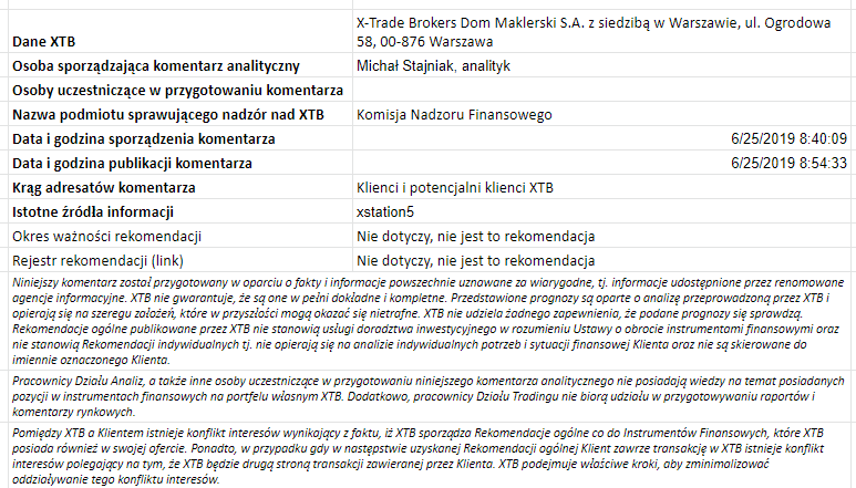 Ta publikacja handlowa jest informacyjna i edukacyjna. Nie jest rekomendacją inwestycyjną ani informacją rekomendującą lub sugerującą strategię inwestycyjną. W materiale nie sugerujemy żadnej strategii inwestycyjnej ani nie świadczymy usługi doradztwa inwestycyjnego. Materiał nie uwzględnia indywidualnej sytuacji finansowej, potrzeb i celów inwestycyjnych klienta. Nie jest też ofertą sprzedaży ani subskrypcji. Nie jest zaproszeniem do nabycia, reklamą ani promocją jakichkolwiek instrumentów finansowych. Publikację handlową przygotowaliśmy starannie i obiektywnie. Przedstawiamy stan faktyczny znany autorom w chwili tworzenia dokumentu. Nie umieszczamy w nim żadnych elementów oceniających. Informacje i badania oparte na historycznych danych lub wynikach oraz prognozy nie stanowią pewnego wskaźnika na przyszłość. Nie odpowiadamy za Twoje działania lub zaniechania, zwłaszcza za to, że zdecydujesz się nabyć lub zbyć instrumenty finansowe na podstawie informacji z tej publikacji handlowej. Nie odpowiadamy też za szkody, które mogą wynikać z bezpośredniego czy też pośredniego wykorzystania tych informacji. Inwestowanie jest ryzykowne. Inwestuj odpowiedzialnie.