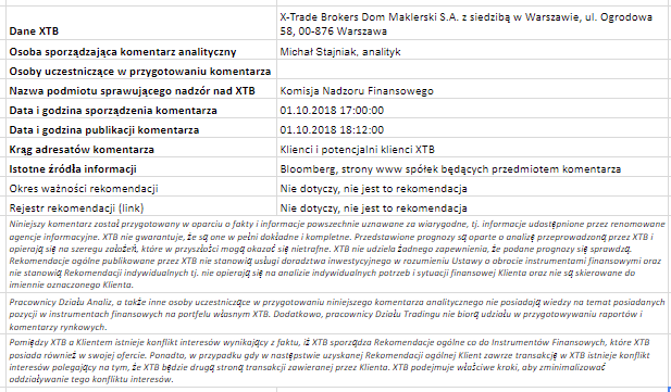 Ta publikacja handlowa jest informacyjna i edukacyjna. Nie jest rekomendacją inwestycyjną ani informacją rekomendującą lub sugerującą strategię inwestycyjną. W materiale nie sugerujemy żadnej strategii inwestycyjnej ani nie świadczymy usługi doradztwa inwestycyjnego. Materiał nie uwzględnia indywidualnej sytuacji finansowej, potrzeb i celów inwestycyjnych klienta. Nie jest też ofertą sprzedaży ani subskrypcji. Nie jest zaproszeniem do nabycia, reklamą ani promocją jakichkolwiek instrumentów finansowych. Publikację handlową przygotowaliśmy starannie i obiektywnie. Przedstawiamy stan faktyczny znany autorom w chwili tworzenia dokumentu. Nie umieszczamy w nim żadnych elementów oceniających. Informacje i badania oparte na historycznych danych lub wynikach oraz prognozy nie stanowią pewnego wskaźnika na przyszłość. Nie odpowiadamy za Twoje działania lub zaniechania, zwłaszcza za to, że zdecydujesz się nabyć lub zbyć instrumenty finansowe na podstawie informacji z tej publikacji handlowej. Nie odpowiadamy też za szkody, które mogą wynikać z bezpośredniego czy też pośredniego wykorzystania tych informacji. Inwestowanie jest ryzykowne. Inwestuj odpowiedzialnie.
