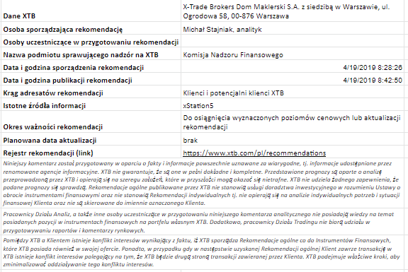 Ta publikacja handlowa jest informacyjna i edukacyjna. Nie jest rekomendacją inwestycyjną ani informacją rekomendującą lub sugerującą strategię inwestycyjną. W materiale nie sugerujemy żadnej strategii inwestycyjnej ani nie świadczymy usługi doradztwa inwestycyjnego. Materiał nie uwzględnia indywidualnej sytuacji finansowej, potrzeb i celów inwestycyjnych klienta. Nie jest też ofertą sprzedaży ani subskrypcji. Nie jest zaproszeniem do nabycia, reklamą ani promocją jakichkolwiek instrumentów finansowych. Publikację handlową przygotowaliśmy starannie i obiektywnie. Przedstawiamy stan faktyczny znany autorom w chwili tworzenia dokumentu. Nie umieszczamy w nim żadnych elementów oceniających. Informacje i badania oparte na historycznych danych lub wynikach oraz prognozy nie stanowią pewnego wskaźnika na przyszłość. Nie odpowiadamy za Twoje działania lub zaniechania, zwłaszcza za to, że zdecydujesz się nabyć lub zbyć instrumenty finansowe na podstawie informacji z tej publikacji handlowej. Nie odpowiadamy też za szkody, które mogą wynikać z bezpośredniego czy też pośredniego wykorzystania tych informacji. Inwestowanie jest ryzykowne. Inwestuj odpowiedzialnie.