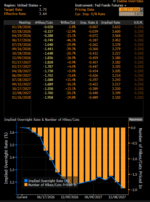 Jutro o godz. 20:00 czasu polskiego Rezerwa Federalna ogłosi swoją pierwszą w 2026 roku decyzję dot. stóp procentowych w USA. Po grudniowej obniżce o 25 pb do przedziału 3,50-3,75% oczekiwania wobec dalszego luzowania polityki monetarnej w Stanach stopniały niemal całkowicie. Rynek kontraktów terminowych nie tylko zakłada brak obniżki po jutrzejszym FOMC, ale również dłuższą pauzę, która może potrwać aż do drugiej połowy 2026 roku. Czy polityka Fed wróciła zatem do neutralnego poziomu?