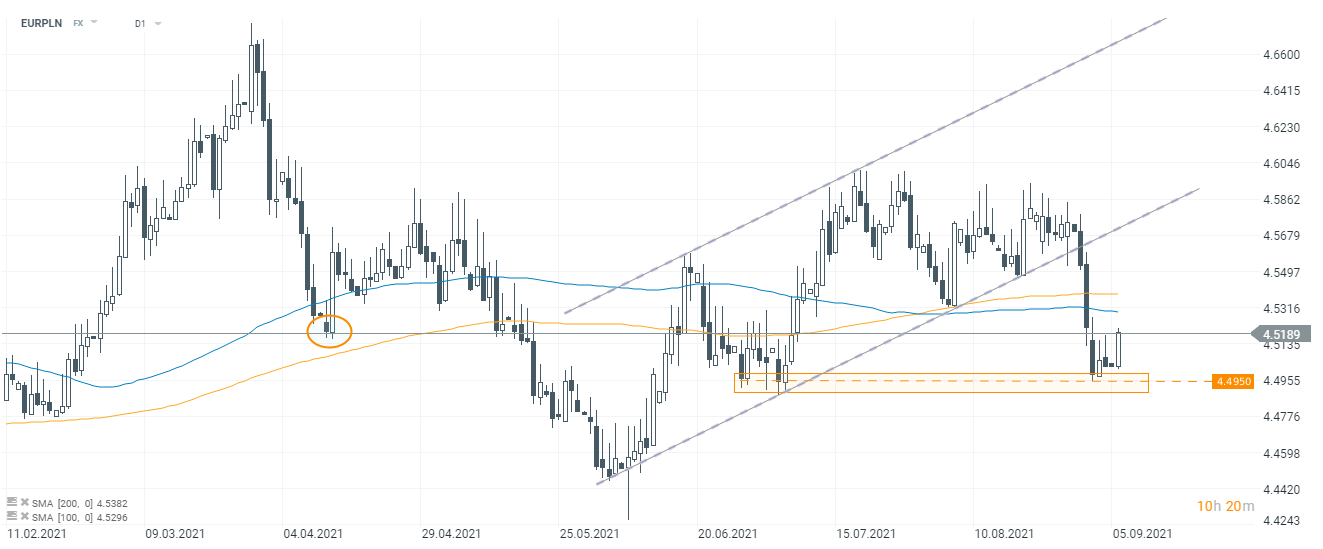 EURPLN, interwał D1. Źródło: xStation5