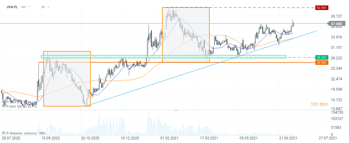 Wydaje się zatem, że ostatnie wzrosty podyktowane są sytuacją na globalnych rynkach surowcowych - mowa konkretnie o zwyżkujących cenach węgla koksowego, który jest kluczowym produktem grupy górniczej. Dziś węgiel koksowy drożeje o kolejne 1,50%. Opublikowane przed chwilą prognozy Komisji Europejskiej są kolejnym pozytywnym czynnikiem dla licznych spółek, również tych surowcowych. Z danych wynika, że wzrost gospodarczy w regionie będzie jeszcze szybszy niż przewidywano wcześniej, co może potencjalnie napędzać ceny licznych surowców.