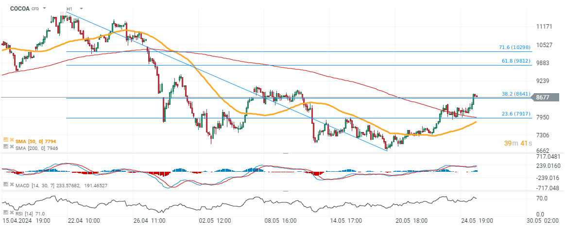 - Jednocześnie firmy reprezentujące inwestorów oczekują, że firmy czekoladowe będą płacić dostawcom coraz więcej, za skup ziaren. Listy w tej sprawie zostały wysłane m.in. do Ferrero, Hershey's, Mars / Mondelez oraz Lindt & Sprungli. Niedźwiedzie na rynku kakao liczną na poprawę pogody i zrekultywowanie gospodarstw zwiększających produkcję. Przychody Ghany z eksportu kakao spadły o prawie 50% r/r, w pierwszych 4 miesiącach roku.