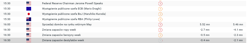 Kluczowe pozycje w środowym kalendarzu „ściśnięte” są pomiędzy 15:30 a 16:30. Źródło: xStation5