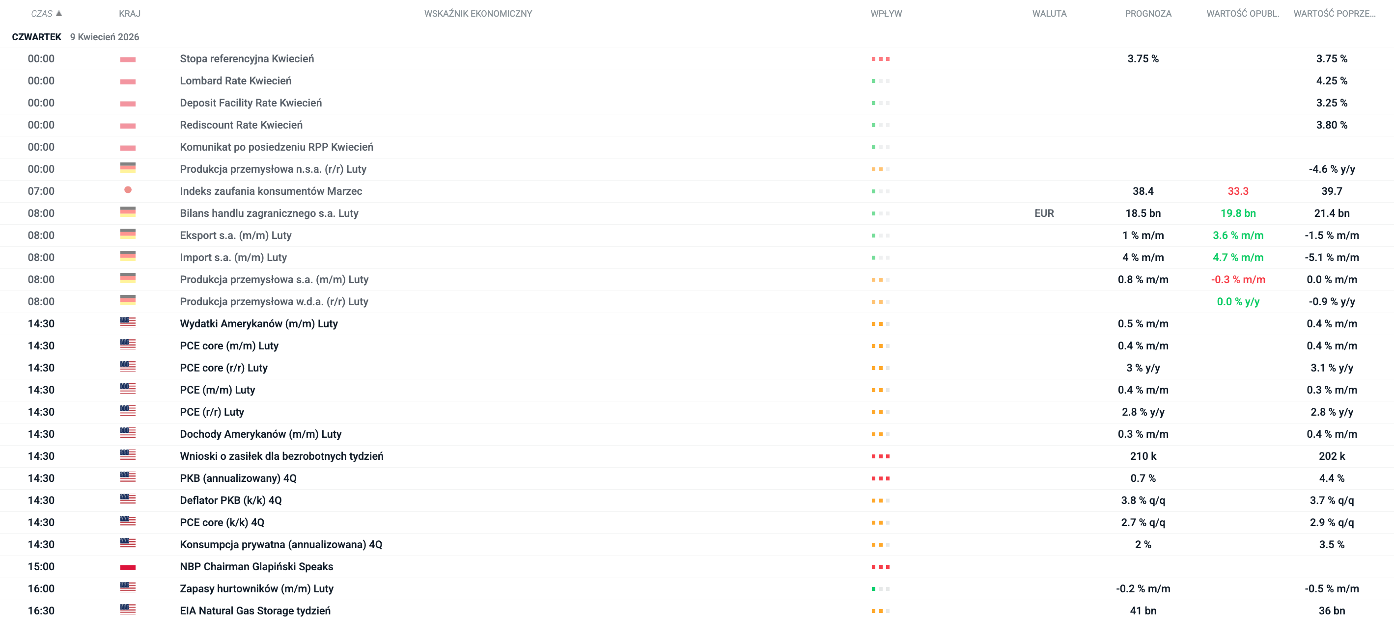 W Polsce uwaga skupia się na Radzie Polityki Pieniężnej. Rynek oczekuje utrzymania stóp procentowych na poziomie 3,75%. Podczas konferencji prezesa NBP możemy spodziewać się ostrożnego i cierpliwego tonu – prof. Glapiński prawdopodobnie podkreśli ogromną niepewność geopolityczną i konieczność czekania na nowe dane, zanim podjęte zostaną jakiekolwiek dalsze kroki.