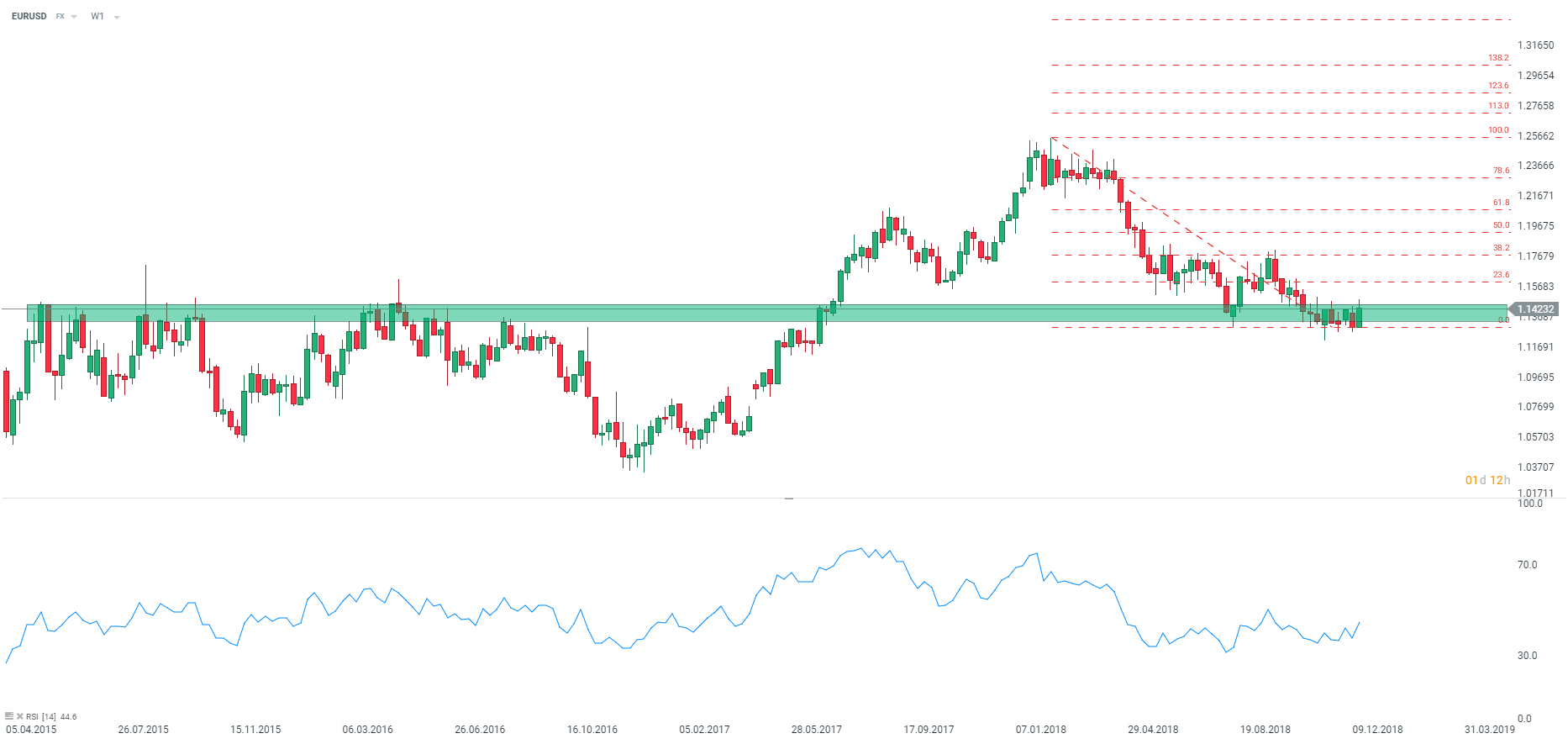 EURUSD wzrół wyraźnie w tym tygodniu, ale dzisiaj o poranku cofa się nawet poniżej 1,1440, który jest kluczowym poziomem dla utrzymania impetu wzrostowego. Źródło: xStation5