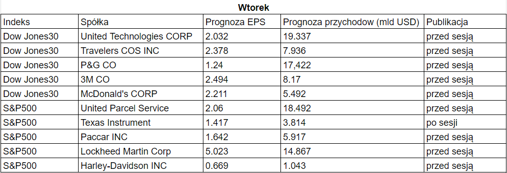 - Pięciu członków indeksu Dow Jones publikuje dziś swoje raporty finansowe