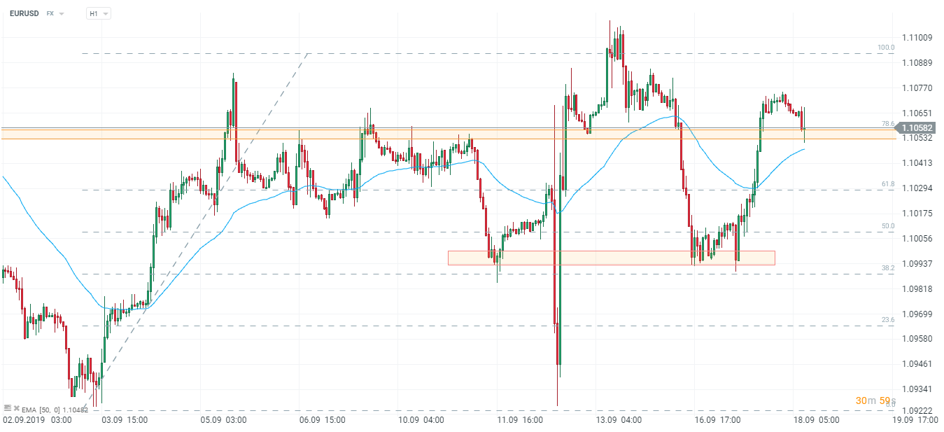 16:30 - USA, cotygodniowy raport DoE dotyczący zapasów ropy naftowej. Pomimo obaw rynku co do zaspokojenia globalnego popytu na “czarne złoto”, które były pokłosiem ataków na rafinerię Saudi Aramco, inwestorzy chwilowo ochłonęli. Jest to spowodowane oficjalnym komunikatem ministra ds. energii Arabii, który poinformował o przywróceniu 50% mocy produkcyjnej, zaś następna transza zwiększenia podaży zostanie osiągnięta w najbliższych tygodniach. Oczekiwania rynkowe wskazują na wzrost zapasów do poziomu -2,496 mln baryłek z wcześniejszego poziomu -6,912 mln, a także wobec raportu API, który wskazał na wzrost do poziomu 0,592 mln.