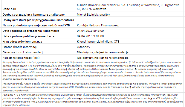 Ta publikacja handlowa jest informacyjna i edukacyjna. Nie jest rekomendacją inwestycyjną ani informacją rekomendującą lub sugerującą strategię inwestycyjną. W materiale nie sugerujemy żadnej strategii inwestycyjnej ani nie świadczymy usługi doradztwa inwestycyjnego. Materiał nie uwzględnia indywidualnej sytuacji finansowej, potrzeb i celów inwestycyjnych klienta. Nie jest też ofertą sprzedaży ani subskrypcji. Nie jest zaproszeniem do nabycia, reklamą ani promocją jakichkolwiek instrumentów finansowych. Publikację handlową przygotowaliśmy starannie i obiektywnie. Przedstawiamy stan faktyczny znany autorom w chwili tworzenia dokumentu. Nie umieszczamy w nim żadnych elementów oceniających. Informacje i badania oparte na historycznych danych lub wynikach oraz prognozy nie stanowią pewnego wskaźnika na przyszłość. Nie odpowiadamy za Twoje działania lub zaniechania, zwłaszcza za to, że zdecydujesz się nabyć lub zbyć instrumenty finansowe na podstawie informacji z tej publikacji handlowej. Nie odpowiadamy też za szkody, które mogą wynikać z bezpośredniego czy też pośredniego wykorzystania tych informacji. Inwestowanie jest ryzykowne. Inwestuj odpowiedzialnie.