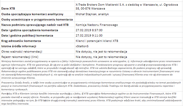 Ta publikacja handlowa jest informacyjna i edukacyjna. Nie jest rekomendacją inwestycyjną ani informacją rekomendującą lub sugerującą strategię inwestycyjną. W materiale nie sugerujemy żadnej strategii inwestycyjnej ani nie świadczymy usługi doradztwa inwestycyjnego. Materiał nie uwzględnia indywidualnej sytuacji finansowej, potrzeb i celów inwestycyjnych klienta. Nie jest też ofertą sprzedaży ani subskrypcji. Nie jest zaproszeniem do nabycia, reklamą ani promocją jakichkolwiek instrumentów finansowych. Publikację handlową przygotowaliśmy starannie i obiektywnie. Przedstawiamy stan faktyczny znany autorom w chwili tworzenia dokumentu. Nie umieszczamy w nim żadnych elementów oceniających. Informacje i badania oparte na historycznych danych lub wynikach oraz prognozy nie stanowią pewnego wskaźnika na przyszłość. Nie odpowiadamy za Twoje działania lub zaniechania, zwłaszcza za to, że zdecydujesz się nabyć lub zbyć instrumenty finansowe na podstawie informacji z tej publikacji handlowej. Nie odpowiadamy też za szkody, które mogą wynikać z bezpośredniego czy też pośredniego wykorzystania tych informacji. Inwestowanie jest ryzykowne. Inwestuj odpowiedzialnie.